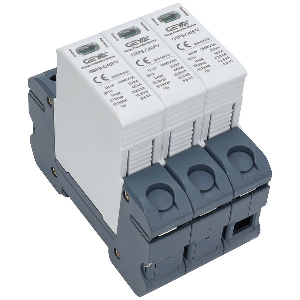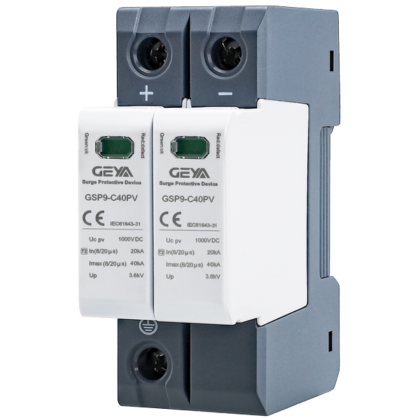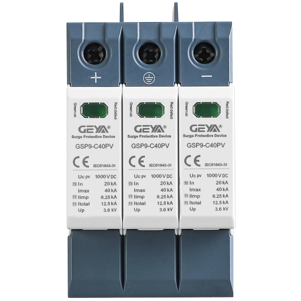 產品介紹:GSP9-C40PV直流浪涌保護器專為直流電源線路系統的過電壓防護設計,符合低壓浪涌保護器標準IEC/EN 61643-11,可有效防護因雷擊或開關操作引起的瞬態過電壓,保障光伏發電系統及相關直流設備穩定可靠運行,光伏系統電壓可達1500V DC。